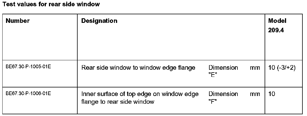 2. Lower rear side window (2) to dimension (e).