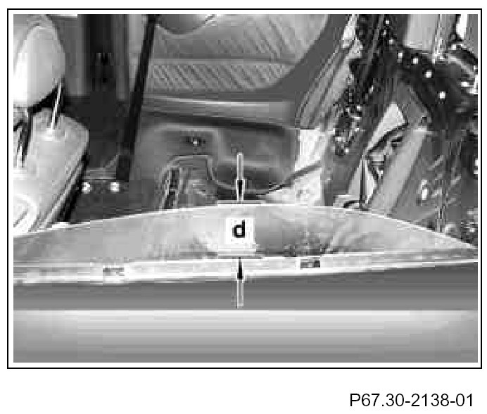 3. Check dimension (e), if required, raise rear side window (2) or lower.