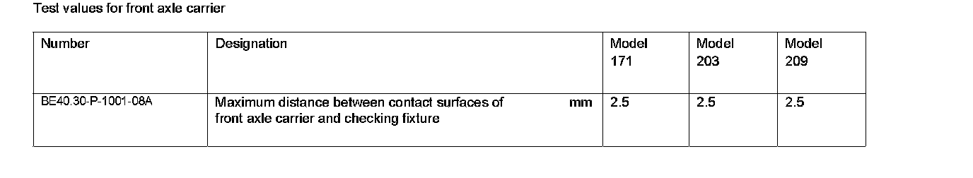 Test values for front axle carrier:
