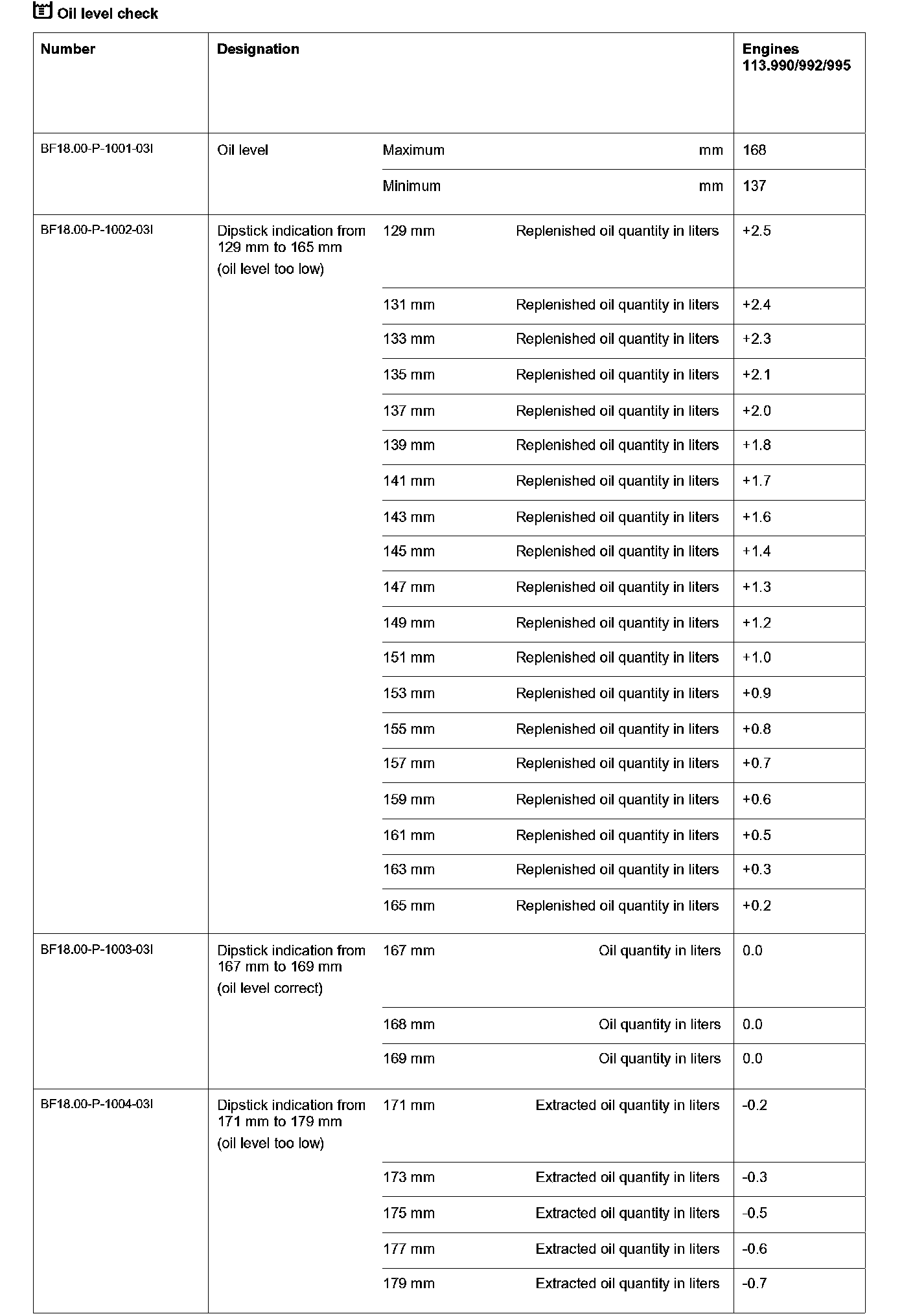 6 Determine replenished oil quantity using oil level table.