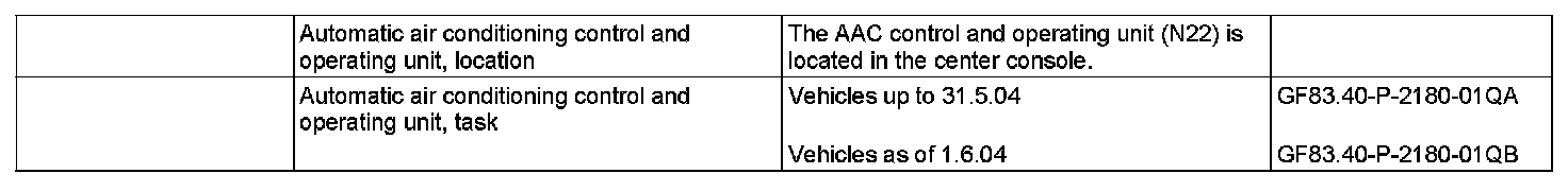 GF83.40-P-2180QA Control and Operating Unit Automatic Air Conditioning Location/Task