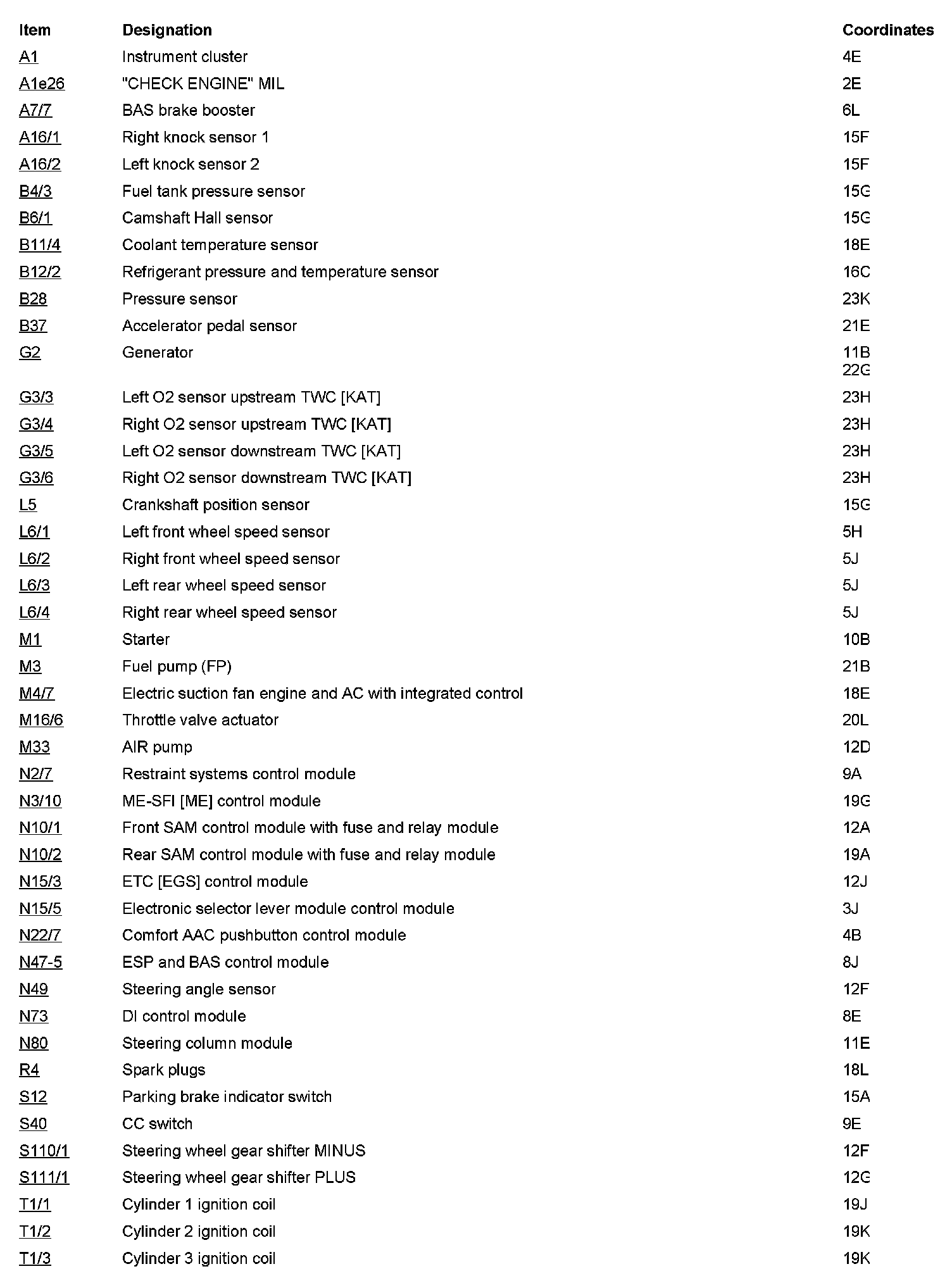 Component Description/Coordinates, A1 To T1/3: