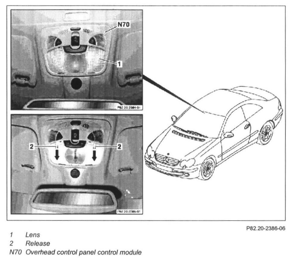 4 Detach overhead control panel control module (N70)