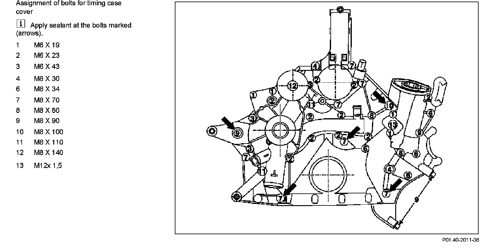 Assignment of bolts for timing case cover