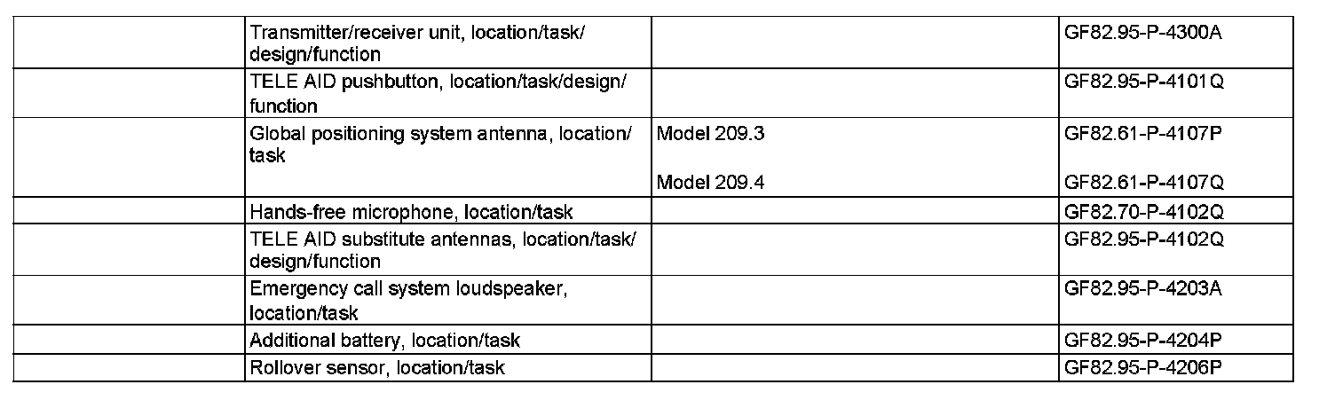 The radio link is established through the telephone system with the aid of the CTEL antenna (A2/22). If the telephone antenna (A2/22) does no longer function due to an accident, the D2B telephone and TELE AID transmitter/receiver (A35/17) switches automatically over to the emergency call system left backup antenna (A2/54) and emergency call system right backup antenna (A2/55). If the power supply is interrupted (e.g., battery interruption), the D2B telephone and TELE AID transmitter/receiver (A35/17) switches automatically over to the additional battery (G1/1). The service provider receives the emergency call. He has a graphic-capable work station with street database. There, among others, the location of the vehicle is determined from the information of the emergency call telegram. The service provider transmits the decoded emergency call telegram to the responsible service center (e.g., police, fire department, German Red Cross).