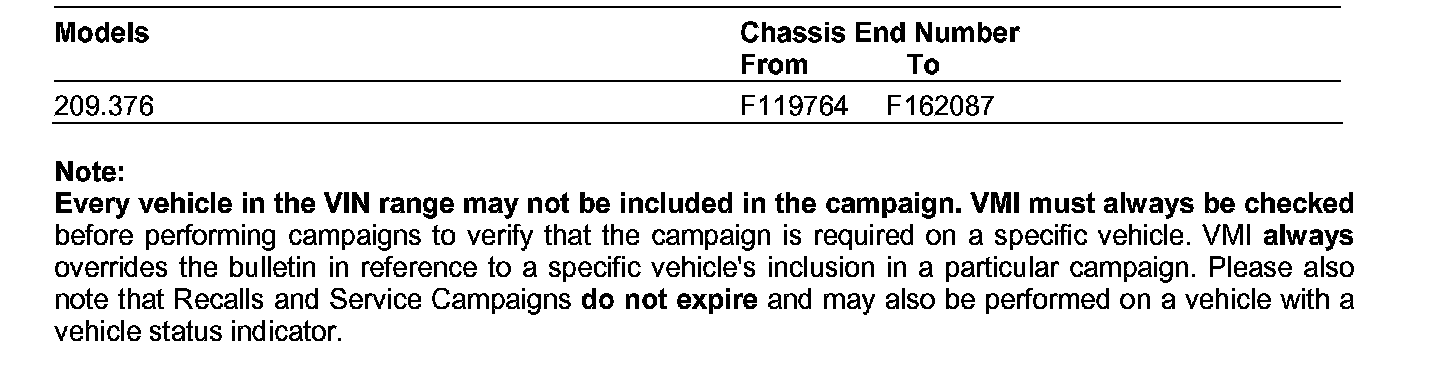 Please review the Effective Serial Number chart located below, and, if necessary, repair the subject vehicles during the vehicle's next service.