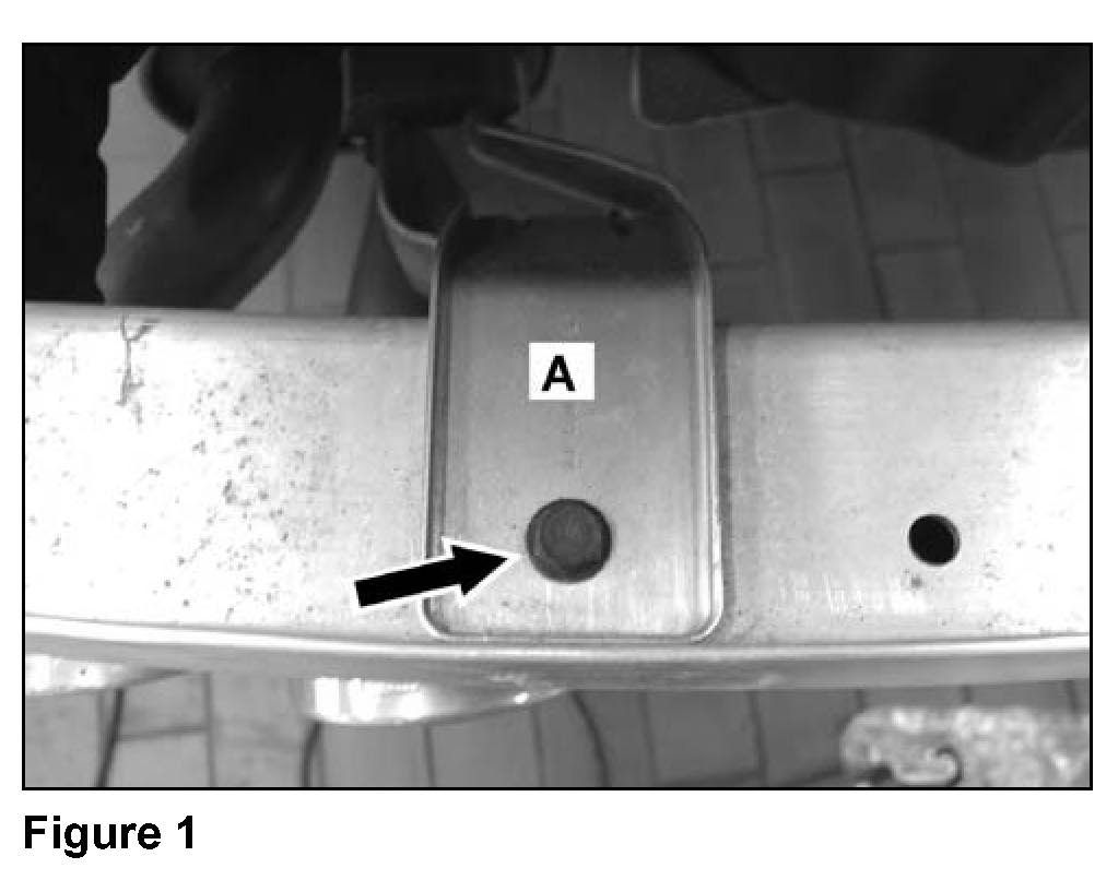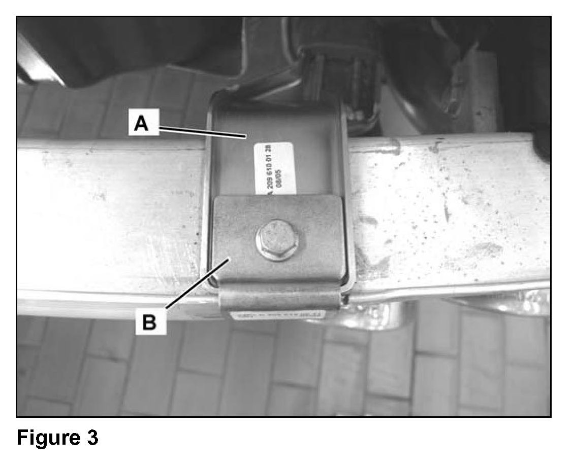 3. Install new bracket (A, Figure 3) and retainer bracket (B); install new bolts as shown in Figures 2 and 3 and torque to 25 Nm.