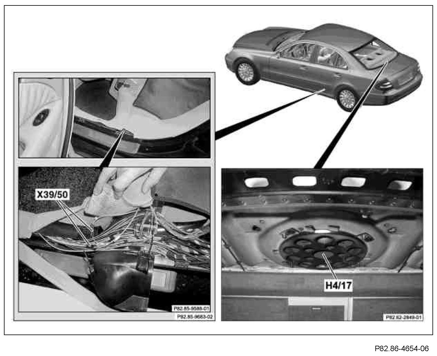The bass module speaker (H4/17) can be seen from the luggage compartment under the rear shelf.