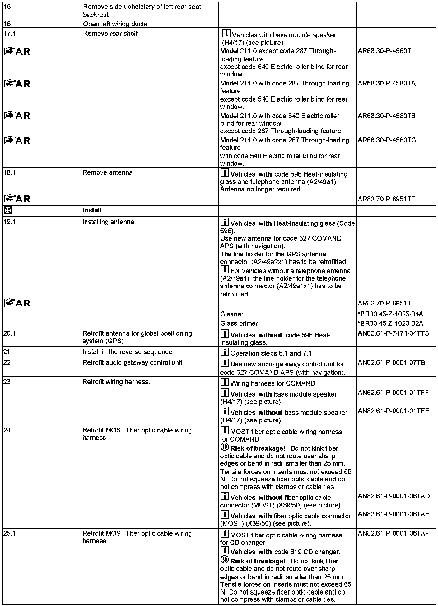 To perform step 24, check whether the fiber optic cable connector (MOST) (X39/50) is installed.
