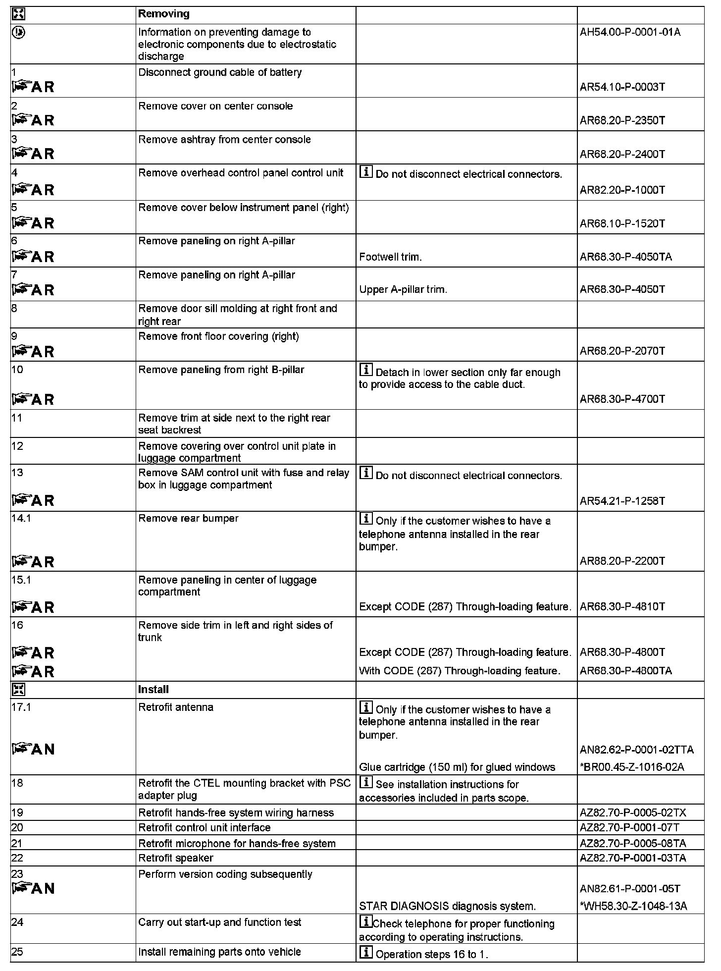 - except CODE (273) Portable CTEL preinstallation (non-networked), VDA wiring