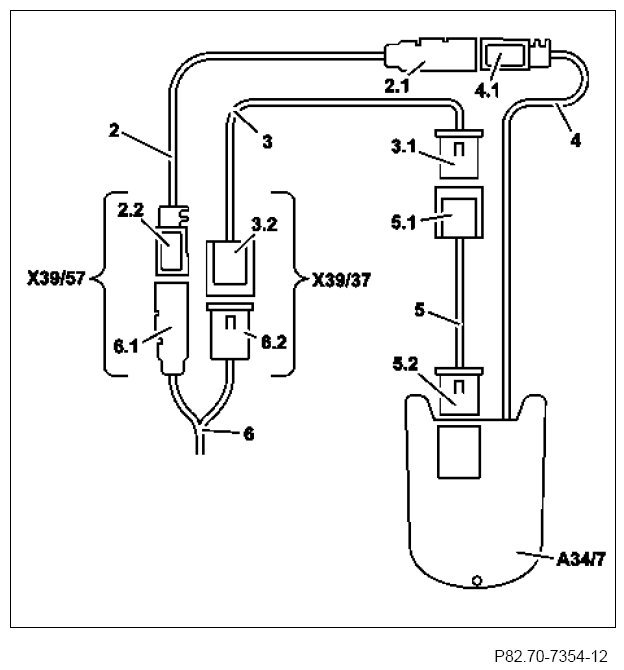The on-board wiring harness for Bluetooth module (3) was connected to the Bluetooth module (A34/7).