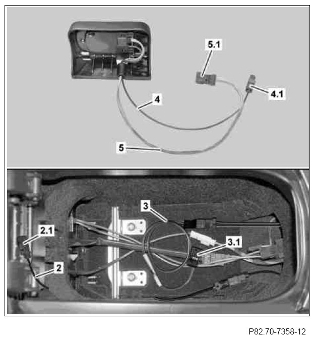8 Connect black 4-pin connector (5.1) of extension for Bluetooth module wiring harness (5) with black 4-pin coupling (3.1) of previously installed on-board wiring harness for Bluetooth module (3).