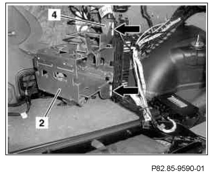 If the navigation processor (N41/1) cannot be slid into the control unit bracket (2), then the control unit bracket (2) must be replaced with the version included in the COMAND retrofit kit.