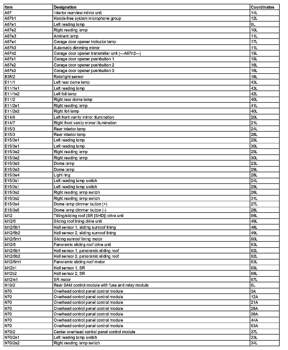 Component Description/Coordinates, A67 T0 N70/2s2: