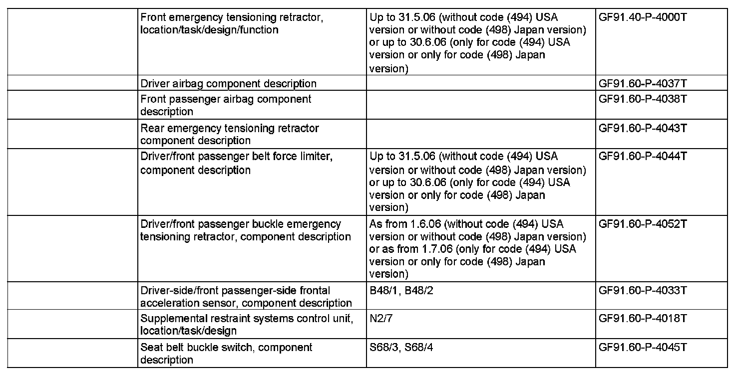 ^ Driver emergency tensioning retractor squib (R12/1) (up to 31.5.06 (not (United States Of America) or (Japan)) or up to 30.6.06 (only (United States Of America) or (Japan)))