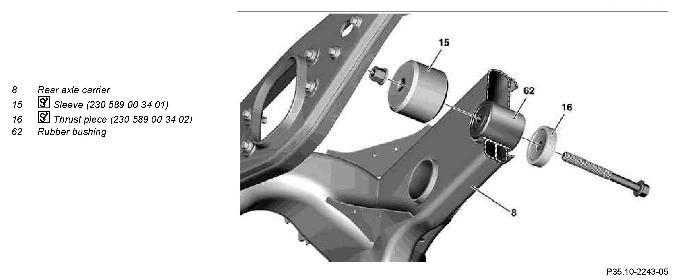 AR35.10-P-0050-02T Remove, install rear rubber mount of rear axle center assembly suspension