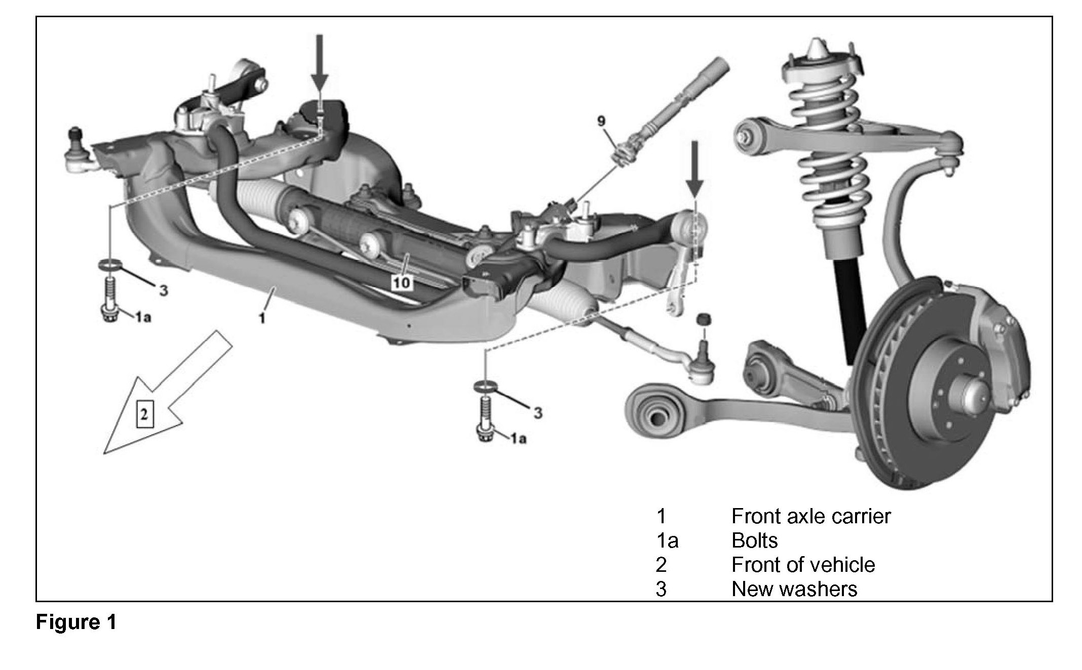 Ensure that only one bolt at a time is removed from the front axle carrier.