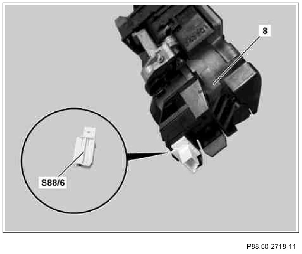 2. Install trunk lid contact switch (S88/6) in trunk lid lock (8).