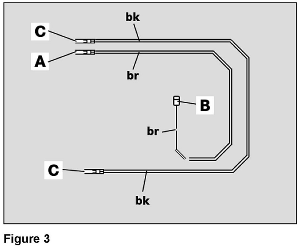 6. Crimp the ground connector (B, Figure 3) onto the other stripped-off end of the brown wire.
