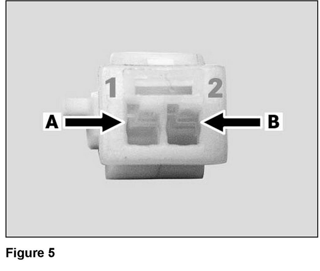 11. Insert the pin (A, Figure 3) of the brown wire into pin "1" (A, Figure 5) of the included connector for the trunk lock microswitch.