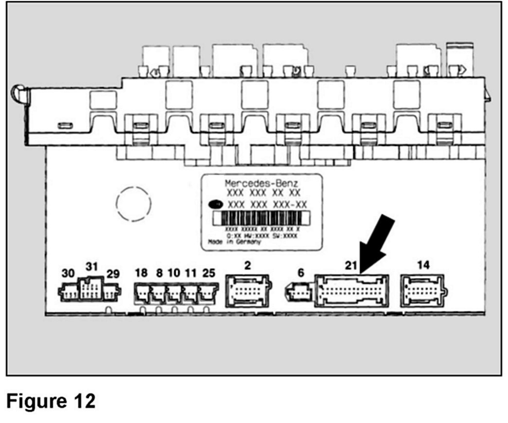 21. Remove connector "21" (Figure 12) from the rear SAM control unit with fuse and relay module.