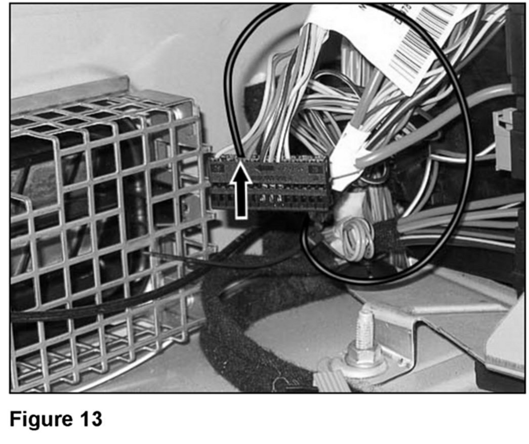 23. Connect the black wire (C, Figure 3) of the new wiring harness to pin "4" of connector 21 (Figure 13).