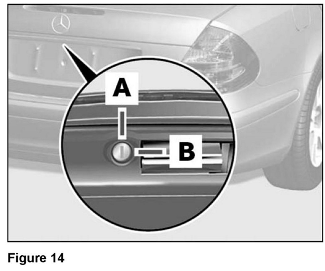 > Pressing the trunk lid button on the license plate recess