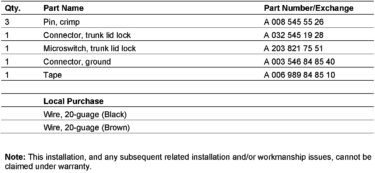Retrofitting the trunk lid valet lock is a customer pay matter. Do not submit a warranty claim for retrofitting the trunk lid valet lock.