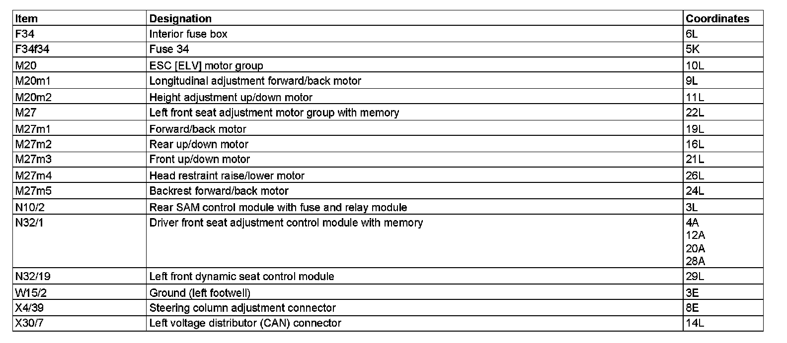 Component Description/Coordinates, F34 To X30/7: