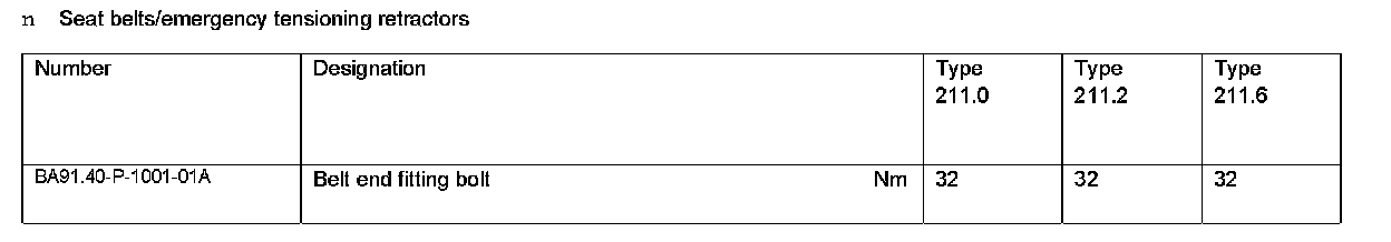 Seat Belts/Emergency Tensioning Retractors:
