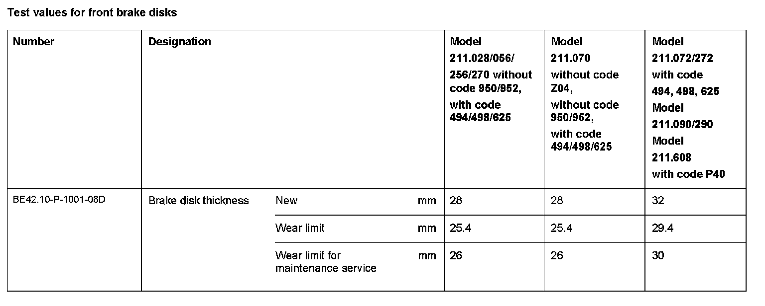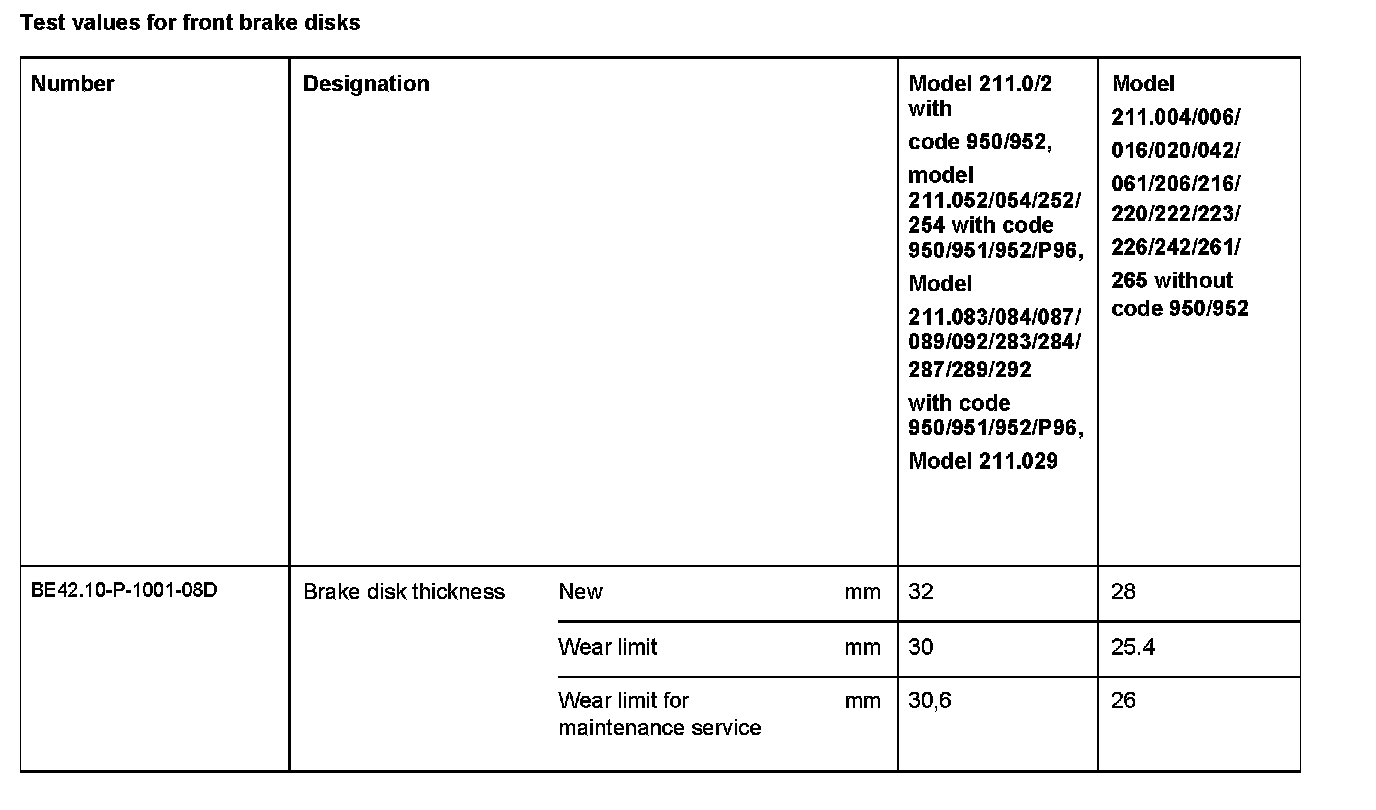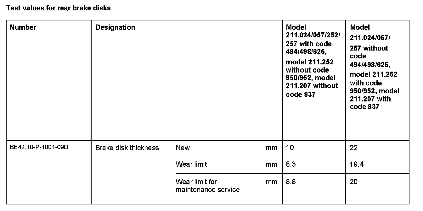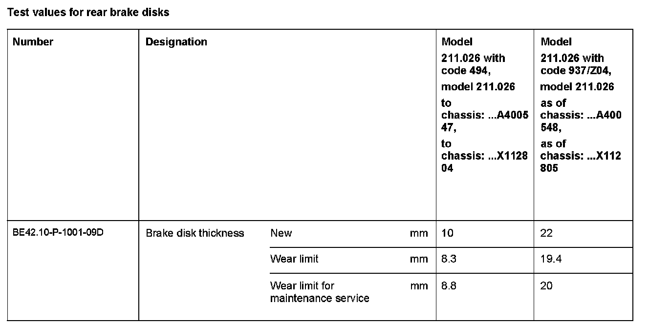 Test Values For Rear Brake Disks: