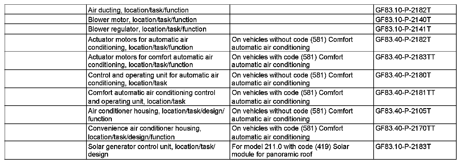 The blower motor is actuated via the blower regulator (A32n1) by the AAC [KLA] control and operating unit (N22) (without code (581) Comfort automatic air conditioning) or Comfort AAC control and operating unit (N22/7) (with code (581) Comfort automatic air conditioning)