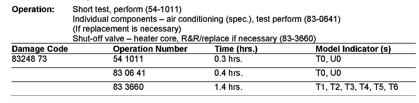 The following allowable labor operations should be used when submitting a warranty claim for this repair.