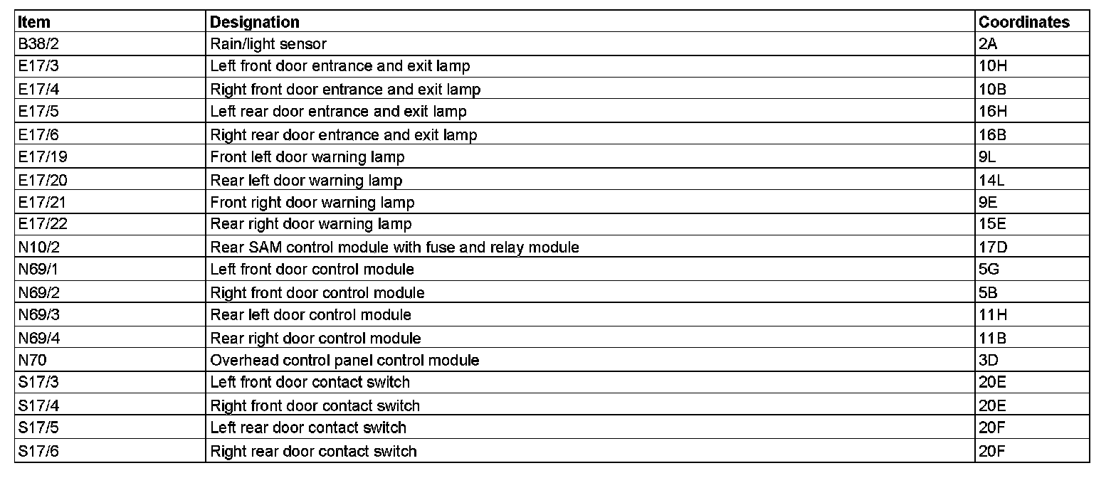 Component Description/Coordinates, B38/2 To S17/6: