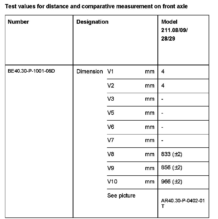 Test Values For Distance And Comparative Measurement On Front Axle: