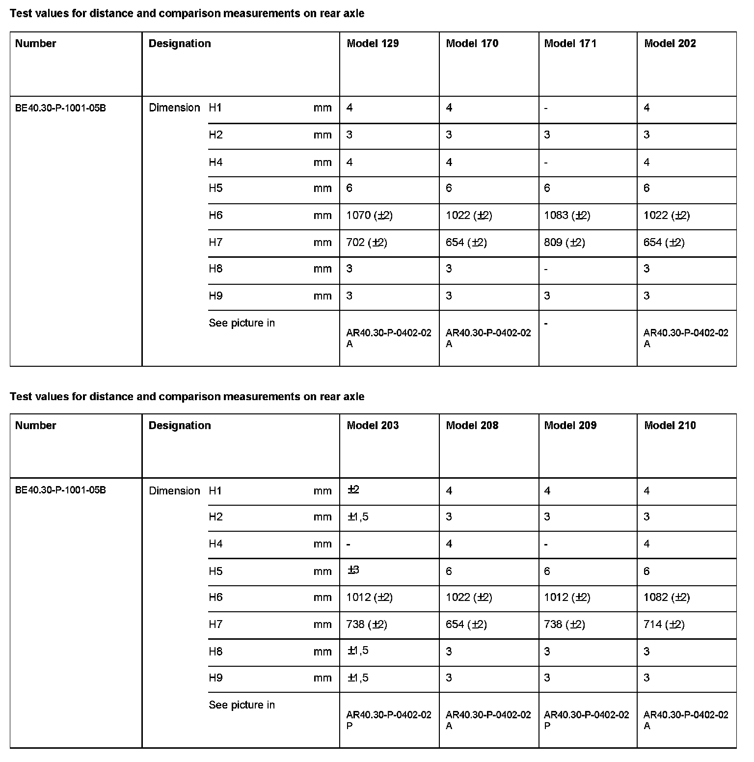 BE40.30-P-1000-05B Test Values For Distance and Comparison Measurements on Rear Axle