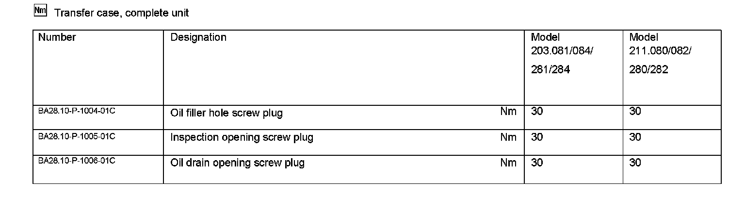 To gain access to all the oil plugs, the rear engine crossmember (42) with the rear engine mount (45) must be removed and the front propeller shaft must be disconnected from the transfer case (16).