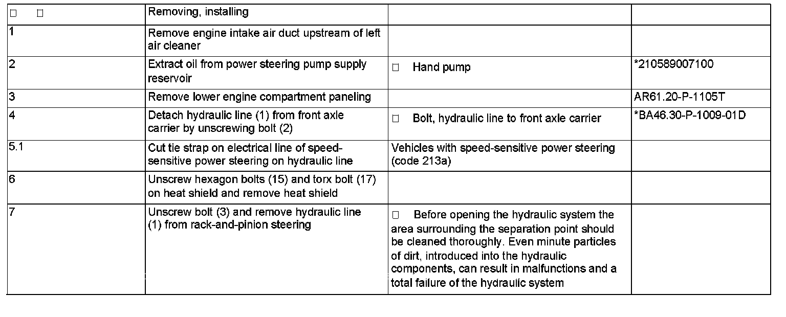 AR46.25-P-3015VA Removing and installing hydraulic line of power steering