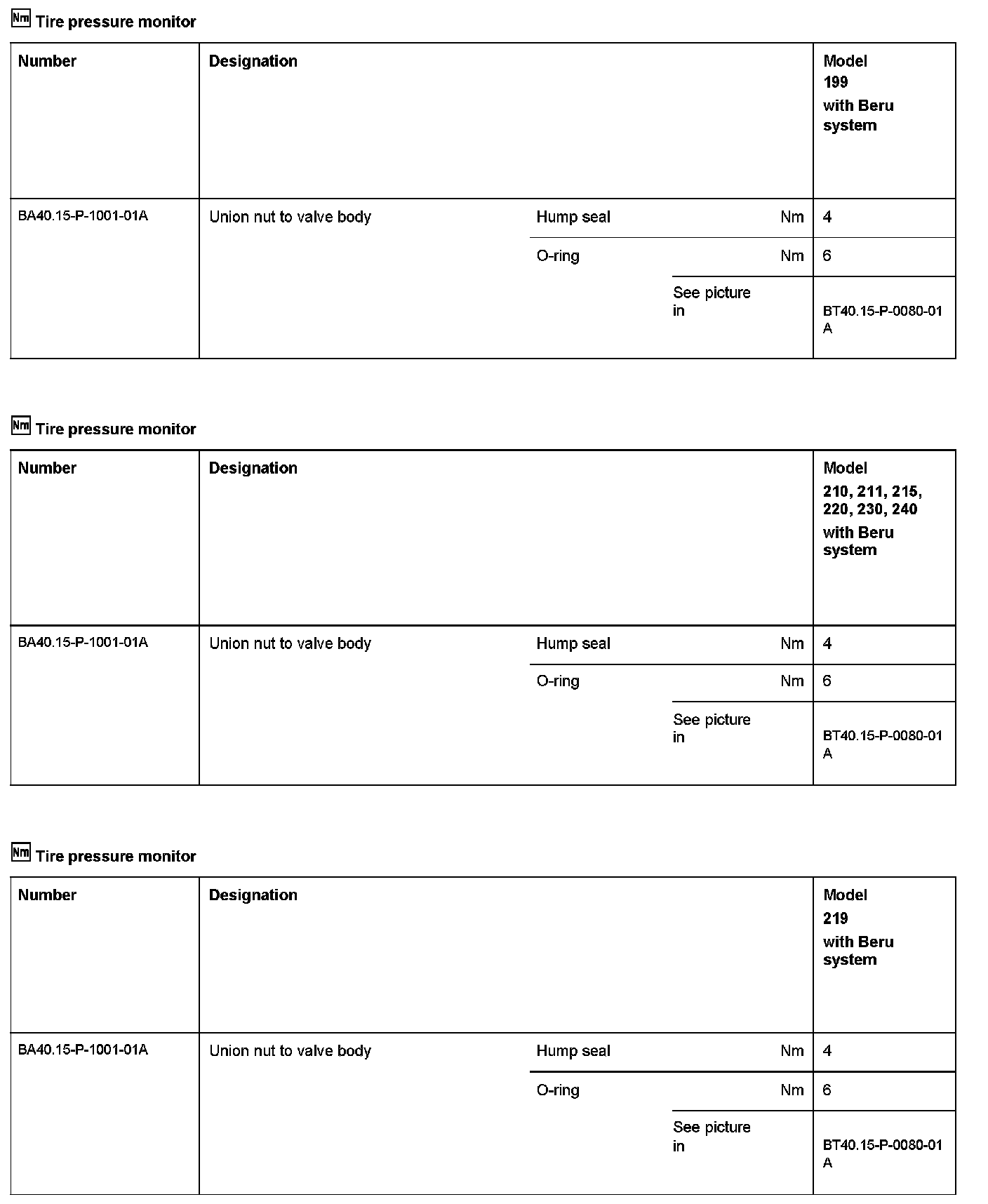 Observe tightening torques for different gasket versions A union nut (2) which is tightened incorrectly leads to wheel leaks or damage to the valve body (3) or TPM wheel sensor (A69/1 to A69/5).