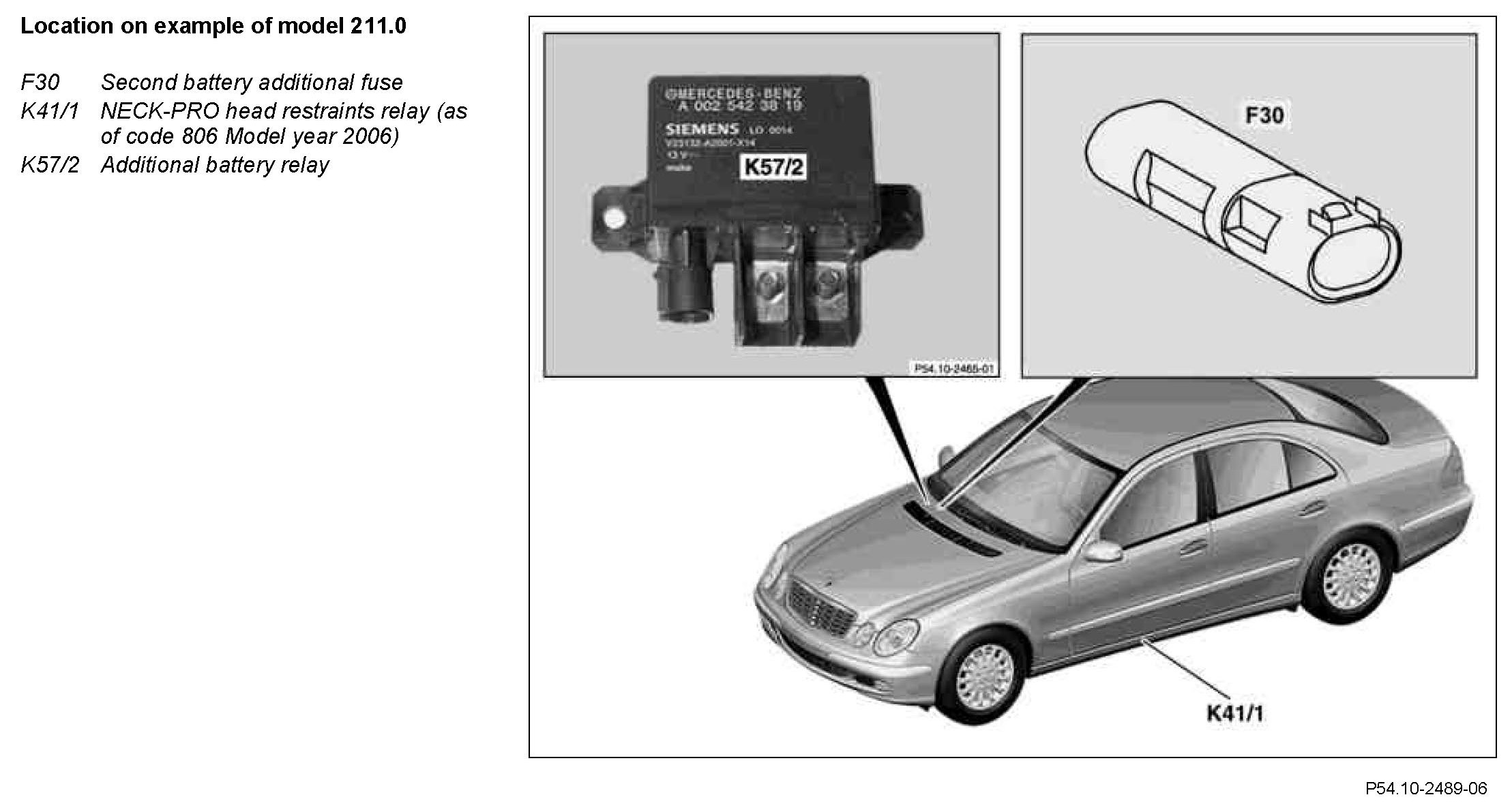 The second battery additional fuse (F30) is attached to the wiring harness next to the additional battery (G1/7) and is designed as a circuit breaker (bimetal fuse).