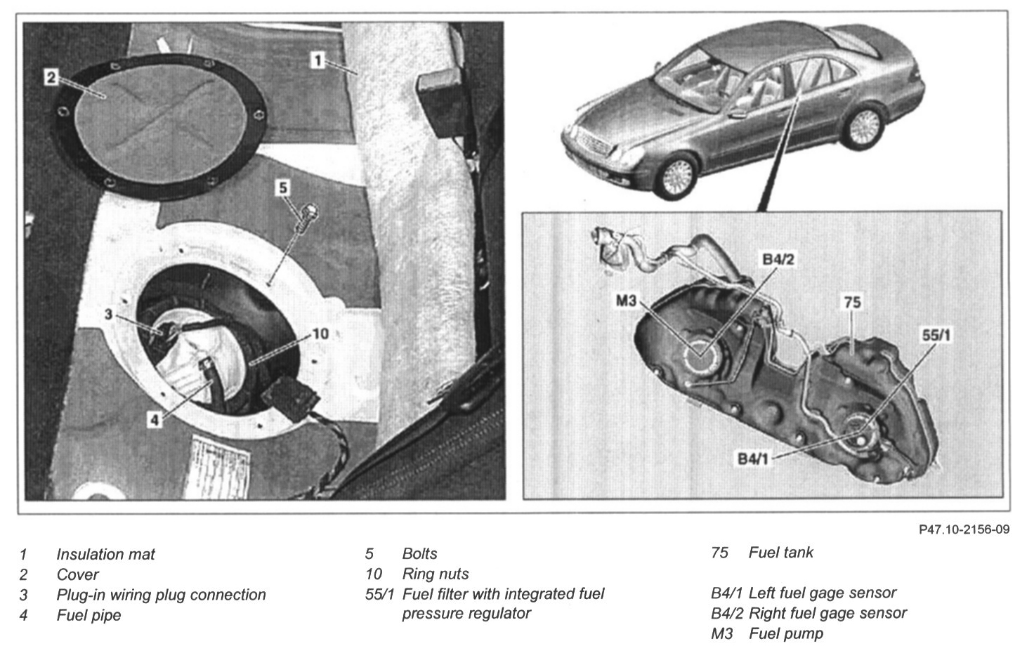 - The marking of the fuel level sensor, left half of tank (B4/1) and the marking of the fuel tank (75) must be matched.