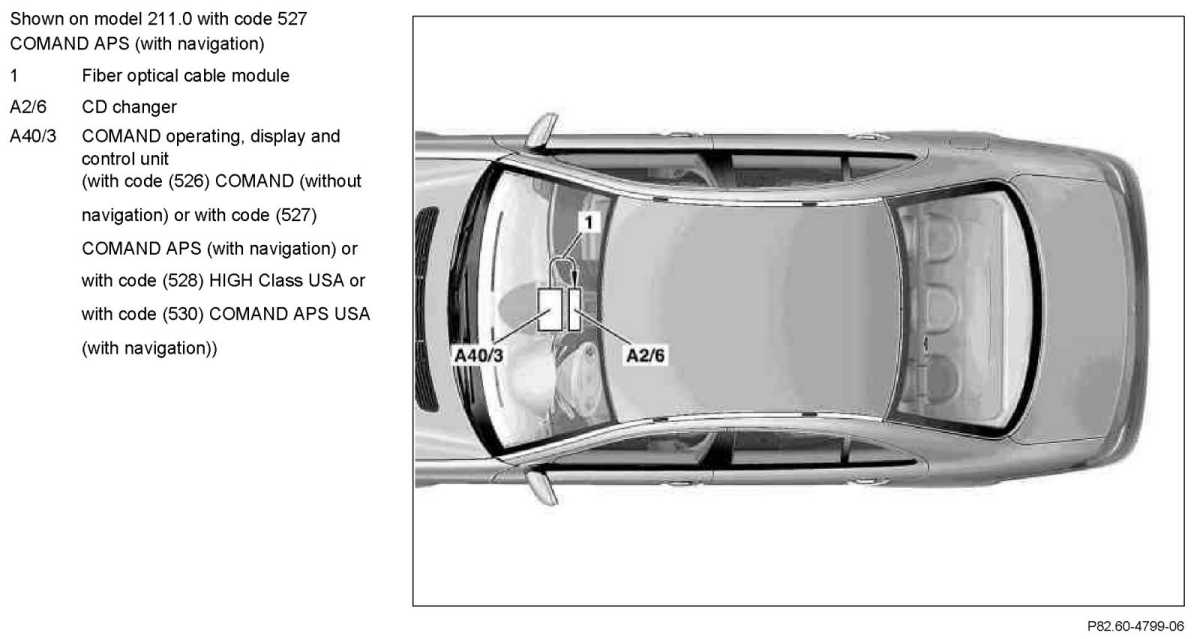 - Fiber optic cable (MOST) between radio/COMAND and CD changer