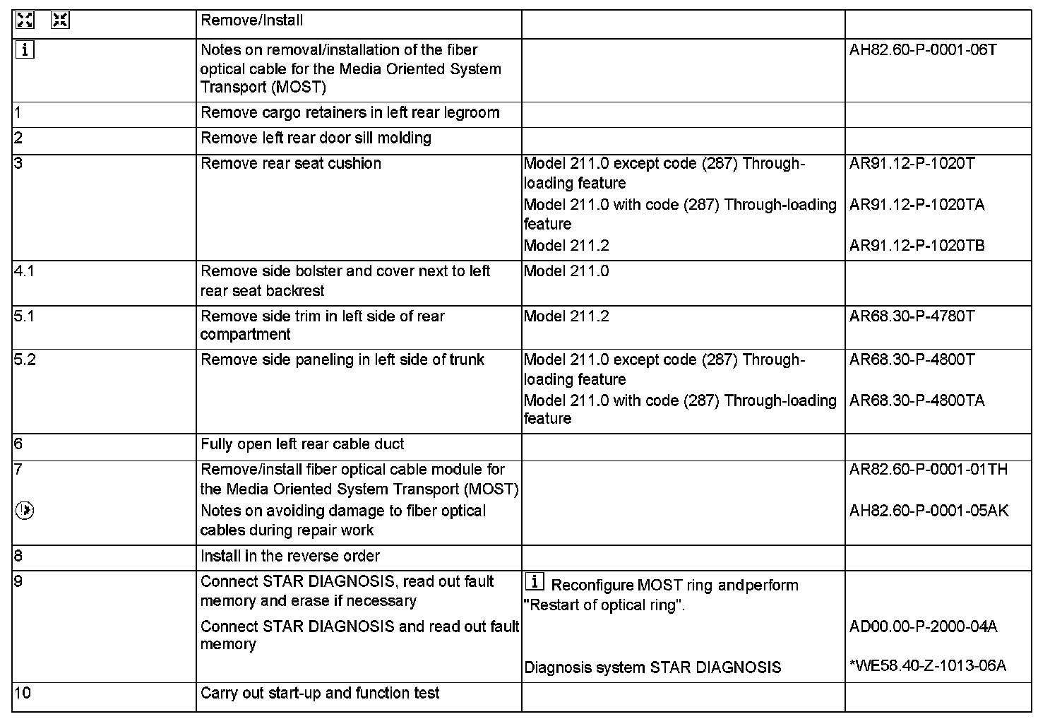 AR82.60-P-0001TH Remove/Install Fiber Optical Cable For the Media Oriented System Transport (MOST)