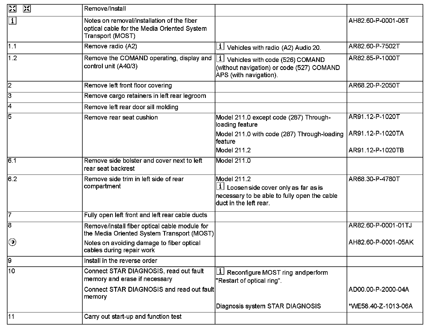 AR82.60-P-0001TJ Remove/Install Fiber Optical Cable For the Media Oriented System Transport (MOST)
