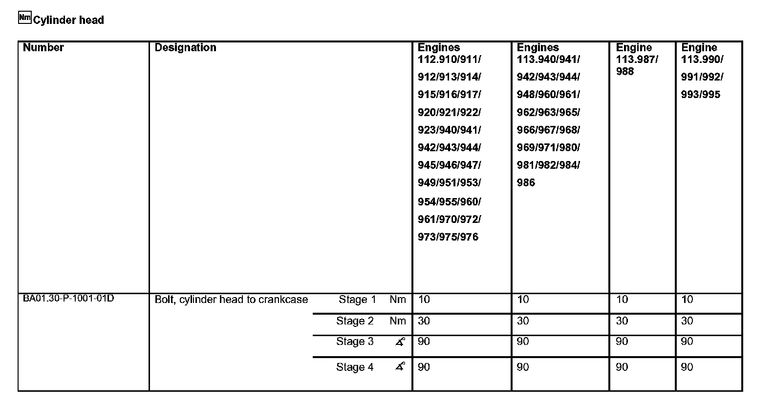 Tightening instructions for left and right cylinder heads M 113