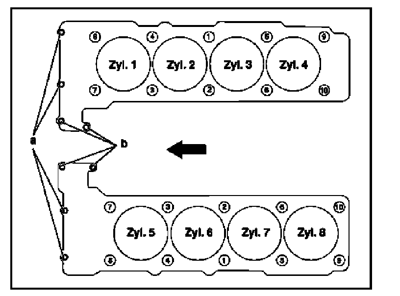 Tightening pattern/bolt assignment Left and right cylinder head M 112: