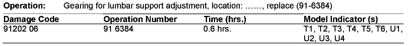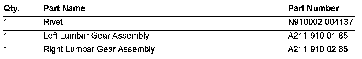 If you receive customer reports in the above model vehicles of the manual lumbar support not functioning, this is due to the lumbar gear ratio being too high. To resolve, the lumbar gear assembly should be replaced per WIS document AR91.10-P-6611T. It is no longer necessary to replace the entire backrest frame.