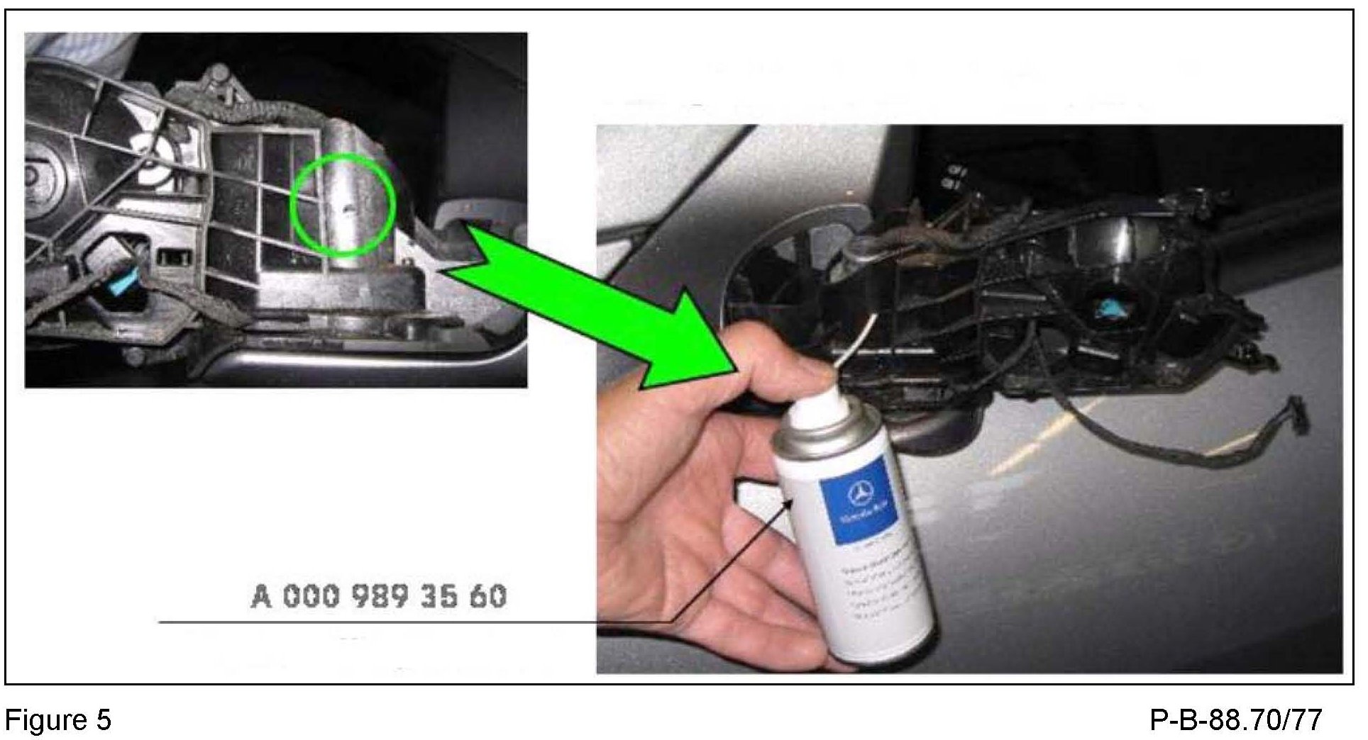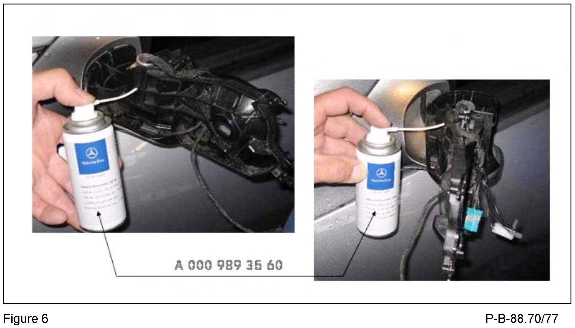 5. Grease the sliding disk. It must be greased with the outside mirror in three positions (folded in, intermediate position and folded out - Figures 5 and 6).
