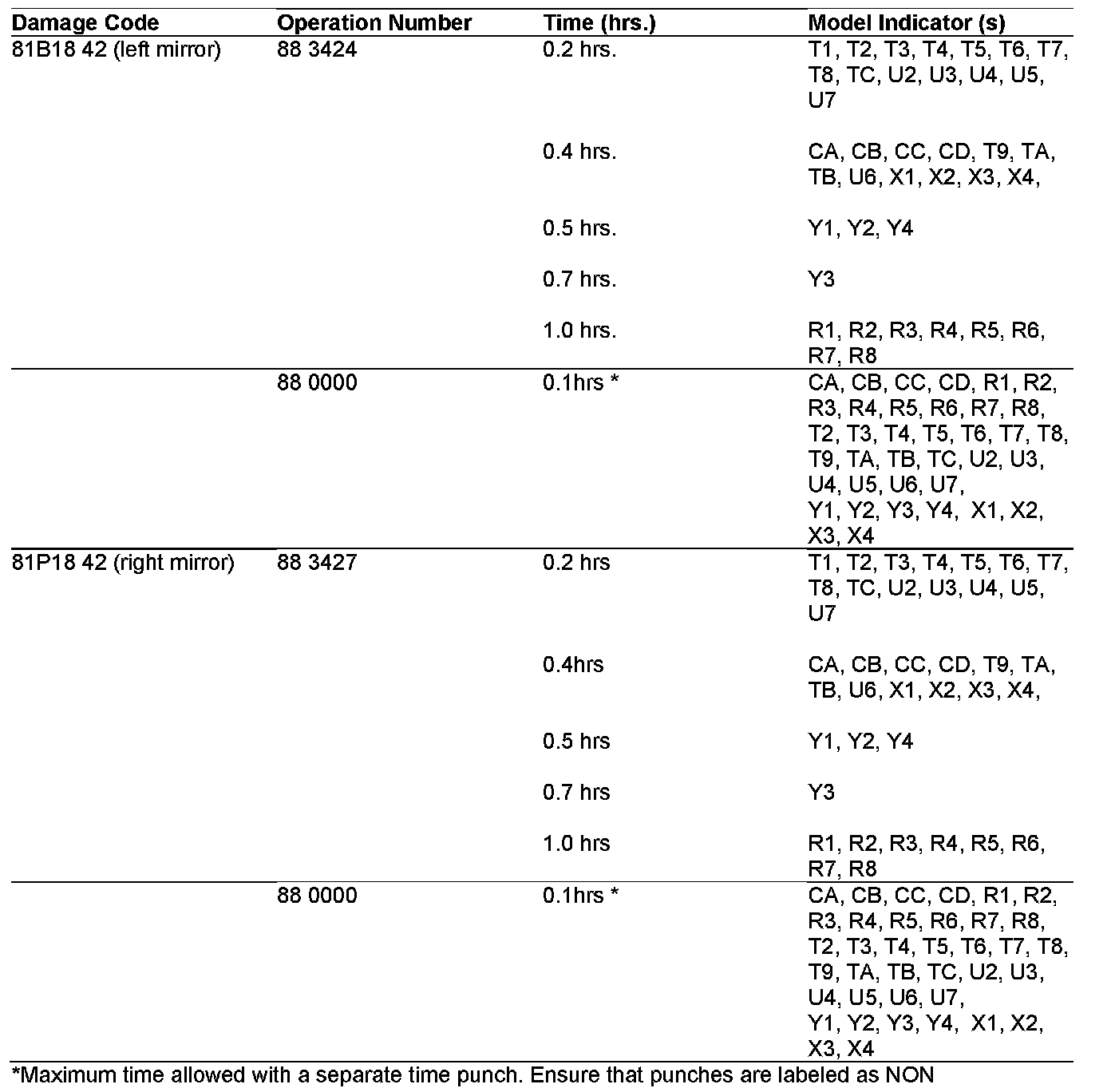 NOTE: The following allowable labor operations should be used when submitting a warranty claim for this repair. This information has been generated on September 25, 2008. Please refer to Netstar -> Star TekInfo -> Star Time for the most current labor time allowance.