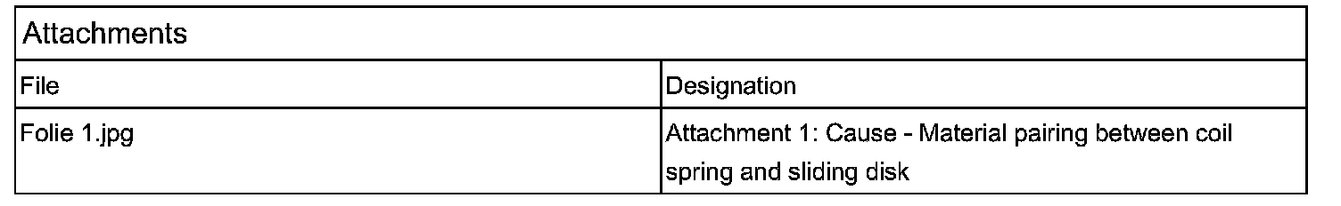 Attachment 1: Cause - Material pairing between coil spring and sliding disk
